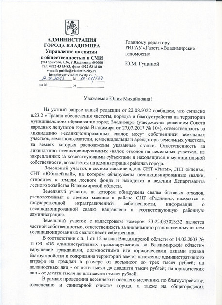 Мы направили запрос по ситуации в этой местности в администрацию города Владимира.