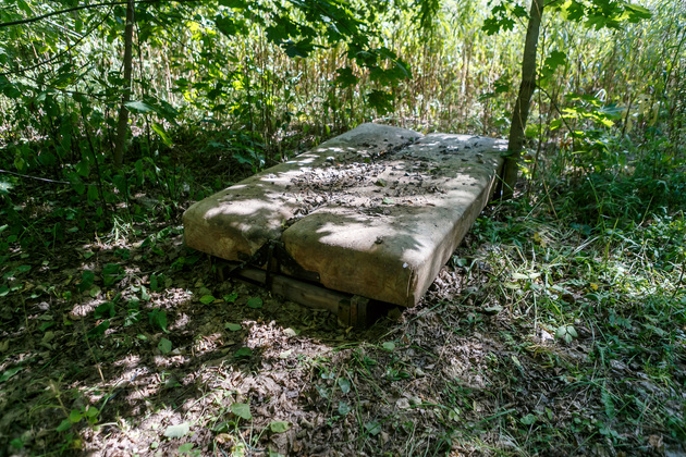 Возвращаемся на трассу и едем в сторону Оргтруда. Как только начинается лес, останавливаемся и любуемся на валяющиеся покрышки. Впрочем, сама роща (на удивление) оказалась чистой. Перемещаемся в лес близ села Лемешки в Суздальском районе. Конечно, с надеждой, что мы там-то уже ничего не найдем. Увы - мусорных куч еще больше. Вдоль противопожарных рвов – самые разнообразные отходы. Насчитали не меньше пяти стихийных свалок. В одной из груд мусора нашему фотокорреспонденту чемодан показался до боли знакомым. Спойлер — два года назад мы были на этой свалке, фиксировали ее, - и вот он: тот же старый чемодан, в нем – битое стекло, рядом выпотрошенный матрас. Да еще прибавка в виде частей старой мебели и стройматериалов. В десяти шагах валяются старые рамы вперемешку с битым стеклом. Кстати, об осколки легко пораниться.