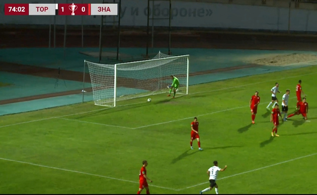 Второй гол сотворил Максим Сасс. Сначала ударил головой – недолет! Но мяч отскочил от газона Сассу прямо на левую ногу и уж со второго раза Максим «выстрелил» точно.