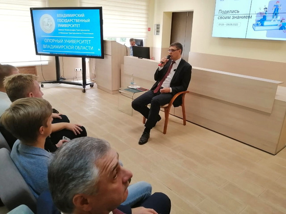После праздничной церемонии Александр Авдеев выступил университетским преподавателем и прочел студентам лекцию о роли и месте Владимирской области в системе мирового разделения труда, рассказал о глобальной конкуренции на мировых рынках и вызванных ею политических процессах, рекомендовал всю информацию, получаемую из различных источников, воспринимать критически и думать самостоятельно.