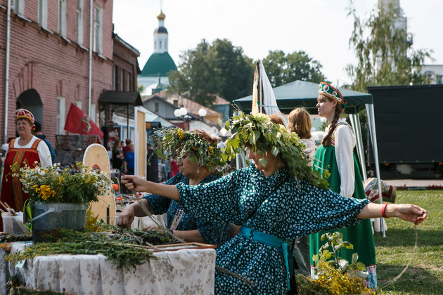 Еще одно место притяжения ремесленников – улица Георгиевская, где можно было продолжить знакомство с обычаями разных народов благодаря выставке национальных костюмов. Под музыкальное сопровождение артистов этно-фестиваля «Эх, гармошка!» развернулась большая творческая программа «Щедра талантами родная сторона». Взор сразу привлекли две женщины в больших лиственных венках: «Нас ищут по запаху! Ветер дует, и люди думают: откуда такой травяной аромат?» – говорит одна из мастериц. Александра Громова вместе с другими энтузиастами возрождают в Александровском районе ткацкое мастерство. На день города решили облегчить мастер-класс для детей: «Показываем на травах. Это проще, чем на станке с нитками. Раньше ароматизаторы были только в натуральном виде. Запах сохраняется даже зимой».