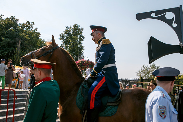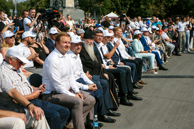 Старт субботнему празднику в полдень дал концерт на Соборной площади. Местность оградили забором, а входы на площадь находились под охраной полицейских. Там дежурили более 350 сотрудников органов внутренних дел, а также росгвардейцев и народных дружинников.