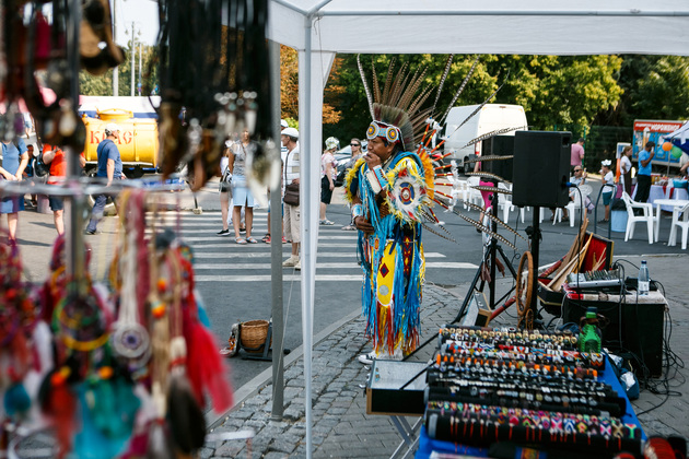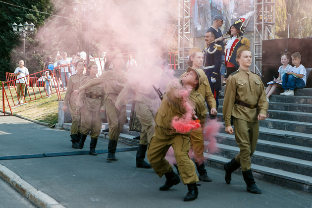 Мимо здания кинотеатра «Художественный» – локация для любителей кино, где представляли «Легенды Синематографа». Узнали о тех, кто стоял у истоков владимирского киноискусства, а сама площадка у «Художки» превратилась в съемочную площадку черно-белого фильма. Немного выбивался из общей картины музыкант в костюме не то перуанца, не то индейца, игравший российские хиты на флейте, но в своей интерпретации. Для маленьких владимирцев возле драмтеатра работал «Остров детства»: игры, аквагрим, аттракционы и аниматоры.