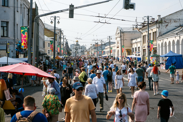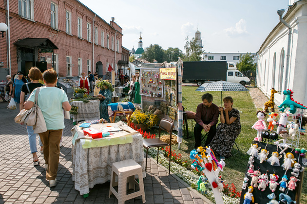 В соседней палатке гостям презентовали «съедобный» мастер-класс по расписыванию имбирных пряников глазурью, рядом – по лепке из глины, в другой учили резьбе по дереву. Шахматные столы собрали вместе взрослых и детей. На траве, в окружении деревьев, можно было заняться фитнесом. Ближе к Спасскому холму местные художники предлагали «раскрасить» Успенский собор и другие известные памятники архитектуры.