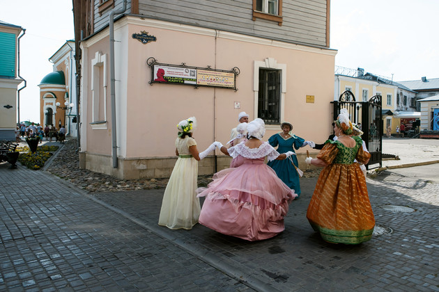 Так же мы побывали на балу XIX века, который устроили дамы и господа в старинных нарядах возле «Дома с привидениями» – бывшей губернаторской резиденции. Желающих учили танцевать мазурку, польку, полонез и вальс. Неподалеку гости слушали городские легенды.