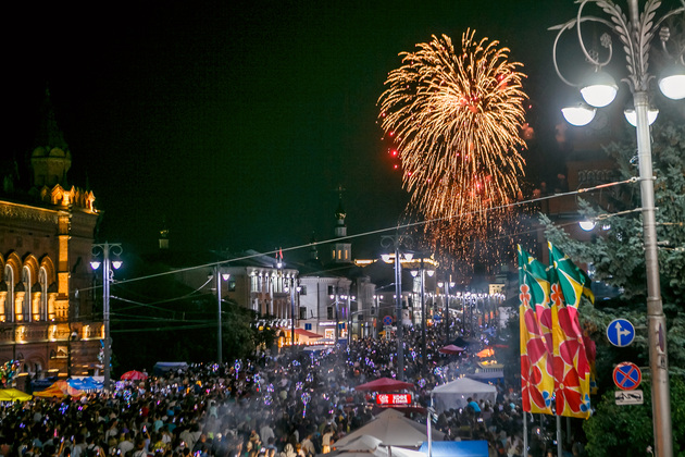 Уже с вечера пятницы молодежь ждал рок-концерт с оркестром на улице Георгиевской. А, проезжая по Большой Московской, можно было видеть, как устанавливают главную сцену на Соборной площади.