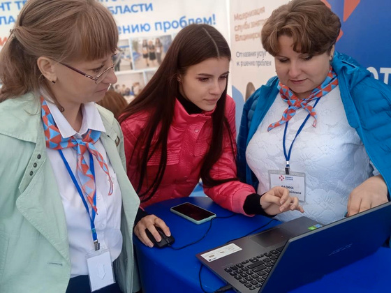 На стенде «Работа России» Владимирцы могли подобрать подходящую работу, пройти профессиональное тестирование и получить рекомендации от психолога.