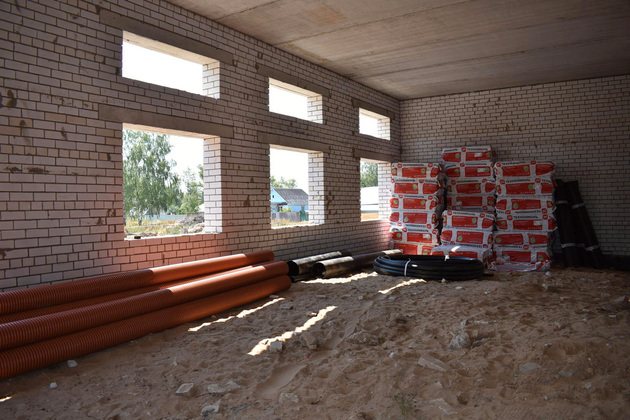 Также планируется благоустроить территорию вокруг дома культуры площадью 3000 квадратных метров, где будет расположена современная парковка, уложены тротуары, выполненные в брусчатке, предусмотрены летняя площадка и сцена для проведения мероприятий на свежем воздухе. На данный момент полностью возведена коробка здания под строительство крыши.