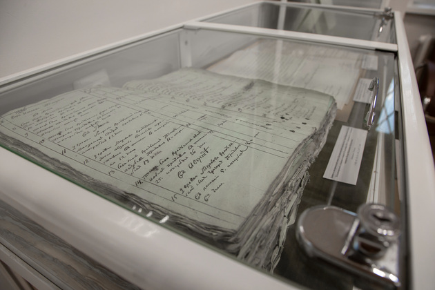 Зал совсем небольшой, но архивисты всякий раз проявляют изумительное творчество, чтобы представить документы на специальных стендах и небольших витринах. Видно, что архиву очень не хватает помещений и современного оборудования, в том числе выставочного.