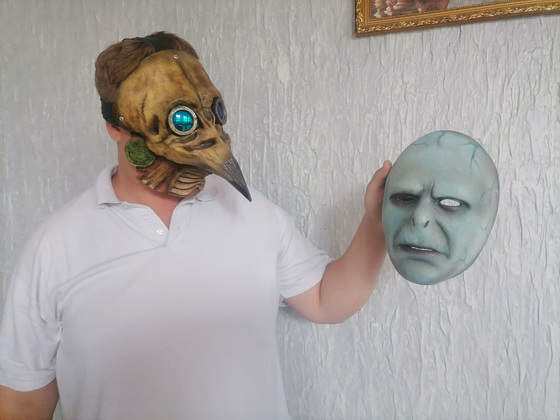 В технике папье-маше работал около года. К этому времени у меня уже было много заказов. Я стал искать более быстрые способы изготовления масок. Так открыл для себя силиконовые молды и литьевой пластик. В отличие от папье-маше, пластик более крепкий, долговечный и намного сокращает время изготовления работы. Сейчас изготовление масок не моя основная деятельность, вообще-то я повар. Хотелось бы полностью перейти на маски, но времени не хватает.
