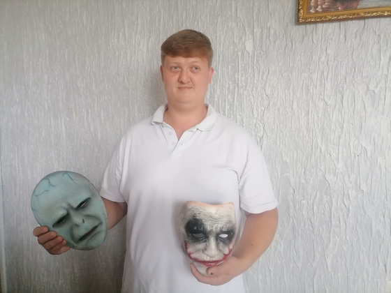 - В моей семье все имеют художественную жилку. Сестра и племянница очень хорошо рисуют. Мама увлекается бисероплетением. Лет с 15 и я начал рисовать, в основном графику, портреты. Одно время хотел научиться аэрографии. Купил аэрограф и стал пробовать рисовать. Но со временем понял, что это не совсем то, чем хотелось бы заниматься серьезно. Хотя опыт пригодился в дальнейшем, сейчас использую эту технику для покраски масок. Собственно масками я занимаюсь около четырёх лет. За это время сделал около 200 работ. Первые делал просто ради интереса. В сети увидел ролик и очень захотел попробовать повторить. Начинал с папье-маше, т.к это наиболее доступный материал. Не нужно было никаких респираторов, перчаток. Закончив одну из работ, решил посмотреть, будет ли она интересна людям, и покупатель нашёлся быстро.