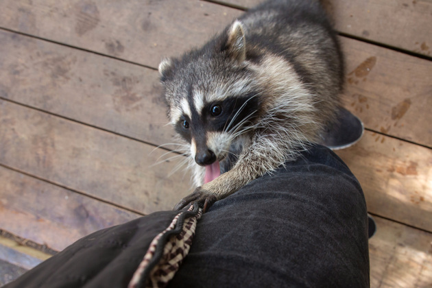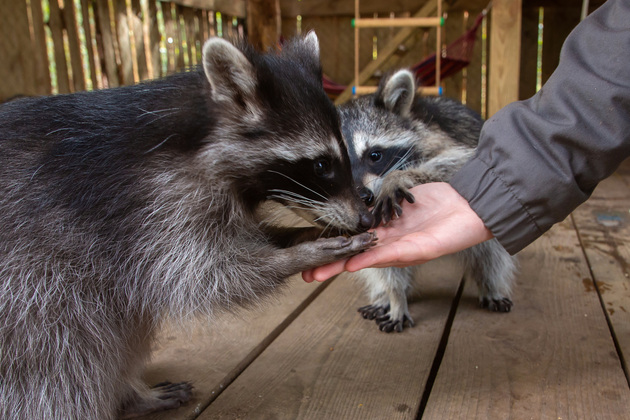 Детей внутрь вольера с енотами не допускают — заботы ради, разве что родители готовы подписаться, что сами отвечают за последствия. Никакой трагедии, конечно, случиться здесь не может, но прикусить в игре за палец или сильно дернуть за волосы енотик способен. Ну а если ребенок испугается и завизжит, это и енотов может, фигурально выражаясь, довести до сердечного приступа. Некоторых родителей, кстати, предупреждения с условиями не останавливают: одна мамочка даже настаивала, чтобы ее дочке позволили зайти пообниматься с енотами, выдавая такой довод: «Да она у меня в клетку с тиграми заходила».