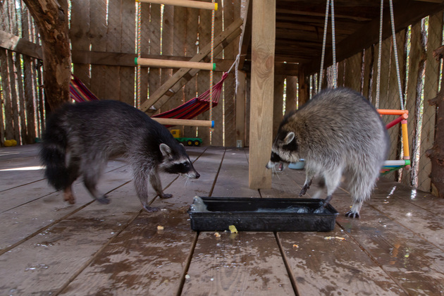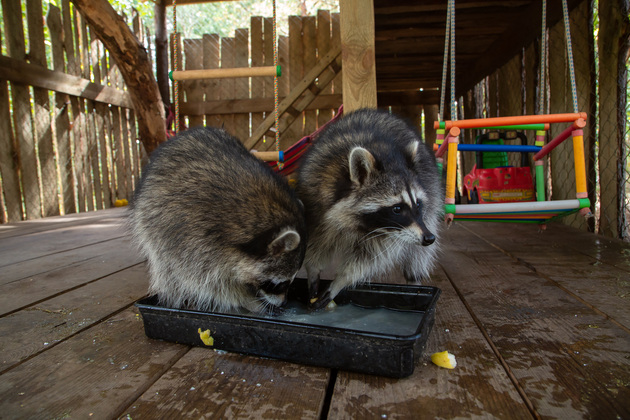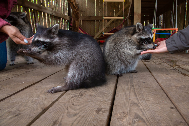 По словам Валентины, сейчас довольно тяжело найти здорового домашнего енотика: браконьеры ловят лесных и пытаются продавать их как домашних. Лесные тоже милы, но злопамятны — если зверек пострадал от человека, приручить не получится. Он так и будет сидеть в углу вольера и смотреть на всех, как на врагов. Не совсем то, что нужно для места, где цель – радовать людей общением с животными.