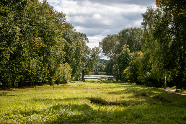 «На открытой террасе перед главным входом в усадьбу открывался вид на все водные каскады. Не случайно усадьбу даже называют Маленьким Петергофом. По сторонам высокие деревья отражались в воде. Весь пейзаж заканчивался музыкальной аркой на противоположном берегу пруда. Говорят, что в ней отдыхали музыканты, пока господа на другом берегу прогуливались. Оркестр состоял из талантливых местных детей, которых специально для этого обучали в музыкальной школе», - говорит экскурсовод.