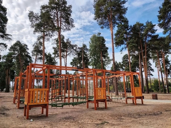 Парк построили в районе улиц Стадионной и Коммунальной, где когда-то был городской лес “Сосенки”. Теперь на участке площадью 3,1 га появились арт-объекты, верёвочный городок, скейт-площадка, а также оборудованы зоны отдыха и парковка для домов на колёсах. Концепция парка строилась вокруг темы экологии, поэтому все постройки деревянные. Также рабочие бережно отнеслись к древним соснам, которые давно растут в этом месте и стали домом для белок.