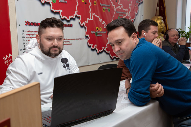 На входе в штаб нас встретили бюсты Ленина и Сталина и красные замена. Заодно нам выдали партийную газету, сказав, что это пароль и без него в штаб не пустят. В самом же штабе, увидев Шамиля Хабибуллина, мы забыли, что делаем репортаж про день голосования, и первый вопрос к нему был про то, состоится ли в этом году фестиваль «Владимирский тяжеловоз»? Ведь выборы заканчиваются, а традиции живут. Если их поддерживать, конечно.