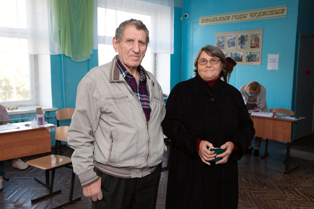 Супруги Валентина и Вячеслав Епифановы после Нового Года отметят Золотую свадьбу. Вместе уже полвека. Голосовать тоже пришли вместе.
