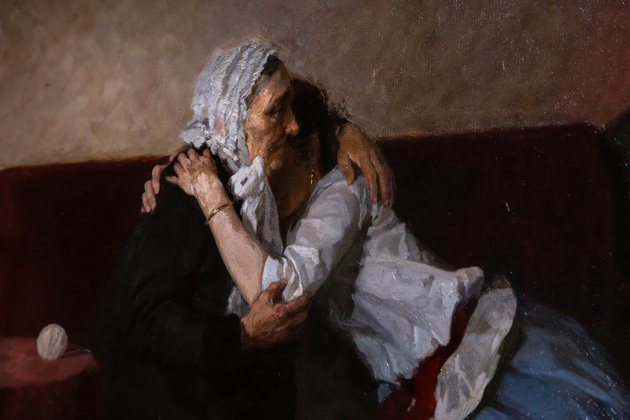Все мужские портреты на этой выставке — дело женских рук. Вот образ кучера, который в 1870 году написала великая княгиня Мария Федоровна, супруга будущего царя Александра III. Кто-то скажет: великокняжеское любительство тех лет. Но работа вполне профессиональная, а из ее описания видно, что русская принцесса немецкого происхождения серьезно занималась живописью. Ясно, что кучер - простой человек из народа - был не так уж прост с точки зрения художницы.