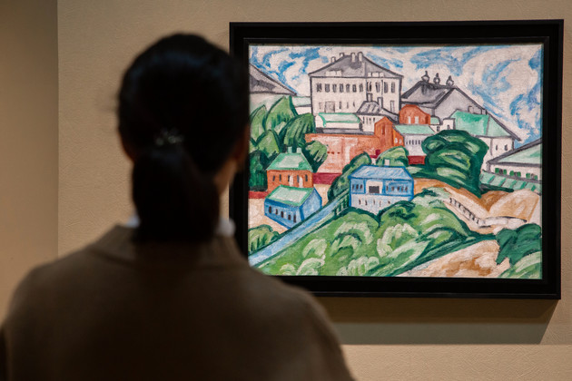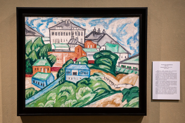 Особо организаторы высветили один из пейзажей в женском исполнении. Он принадлежит кисти звезды русского авангарда Ольги Розановой, нашей землячки, выпускницы Владимирской женской гимназии. «Городской пейзаж» Розановой 1910 года изображает... как раз ту часть Владимира с бывшим домом губернатора, в котором находится ЦИЗО.