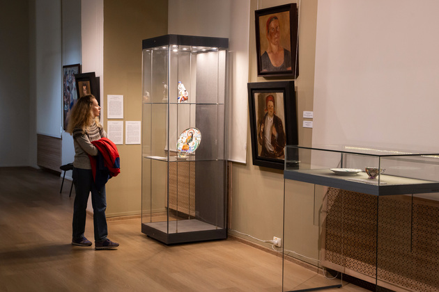 Очень интересны женские автопортреты - взгляды художниц на самих себя. Но на этой выставке - не только картины. Представлены замечательные образцы декоративно-прикладного искусства: фарфоровые изделия Наталии Данько, Александры Щекатихиной-Потоцкой и Пелагеи Шуриги.
