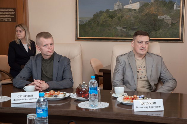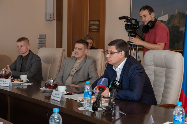 Глава региона начал встречу с вопроса о ситуации в Докучаевске. Собеседники, вернувшиеся во Владимир в субботу, охарактеризовали обстановку как «среднюю». «Обстреливают в последнее время, в две последние недели. Ночью четыре прилета может быть, днем – по семь… Самое сложное – в детский сад попало», – отметил один из участников встречи.