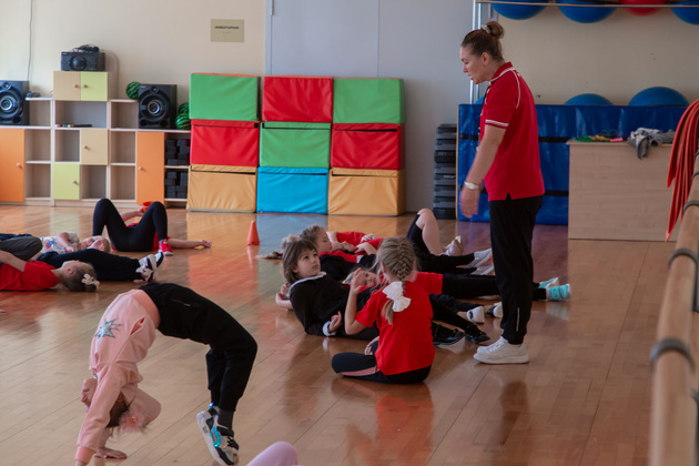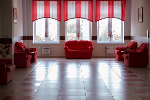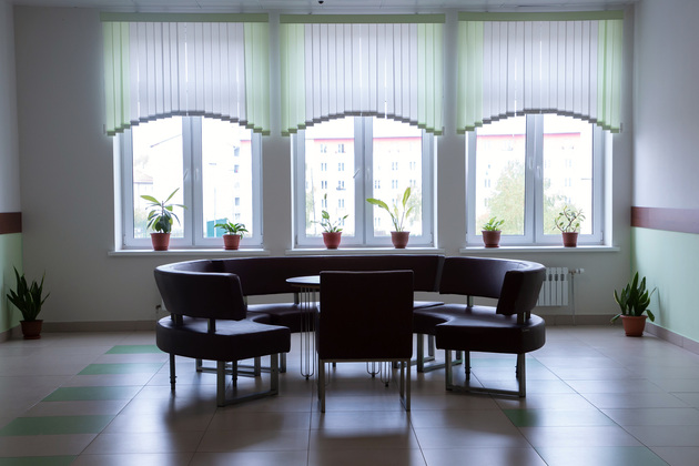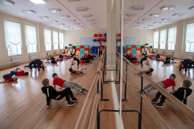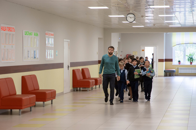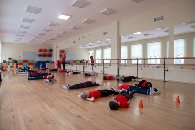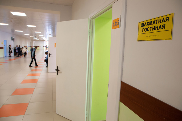 Повсюду — уютные диванчики, рекреационные зоны, санузлы, включая специальные туалеты для инвалидов. У каждого класса — собственная раздевалка. Есть кабинет психолога, шахматная гостиная (!), роскошный актовый зал (в нем даже кино можно показывать), огромный зал хореографии, тренажерный зал, в котором дети могут заниматься вне занятий... А спортзал оборудован для занятий баскетболом (высоту корзин можно регулировать автоматически) и волейболом плюс (все по-взрослому!) здесь есть электронное табло для проведения соревнований. Кстати, спортзал не простаивает — расписан на занятия каждый день до 20:00.