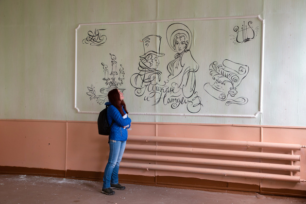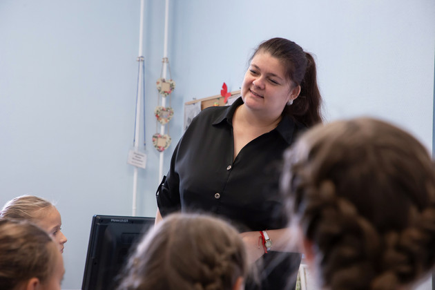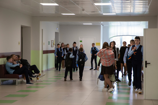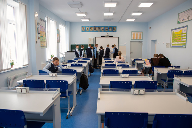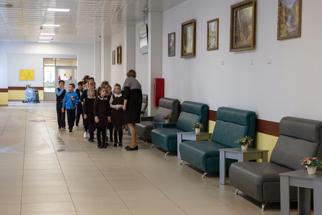 Экскурсию по школе нам провели ее директор Инесса Тишкина и начальник управления образования администрации Собинского района Елена Уварова. Стаж Инессы Борисовны в образовании — 33 года, она в принципе любит свою работу, но буквально светится при рассказе о тех трех годах, что работает именно в этой школе: «Я всегда буквально лечу на работу!». Учителя, не сговариваясь, с улыбками говорят то же самое. Например, Альбина Борисовна Носова, сама выпускница «первой», преподает уже 40 лет и уходить на пенсию не хочет. Дескать, это счастье — работать в таких условиях. Когда не только светло, тепло, красиво и чисто, но и оборудование — космос: интерактивные доски — обязательная опция для каждого класса, огромные напольные планшеты, компьютеры и принтеры у каждого преподавателя. Мы не говорим уже о специфическом оборудовании, необходимом при преподавании физики или химии...