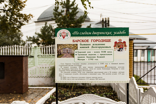 Господский дом Долгоруковых находится в селе Барское Городище. А знаете ли вы, чем отличается городище от селища? Елена рассказала нам, что селище - это неукреплённое поселение, а городище соответственно укреплённое, обнесённое земляными валами.