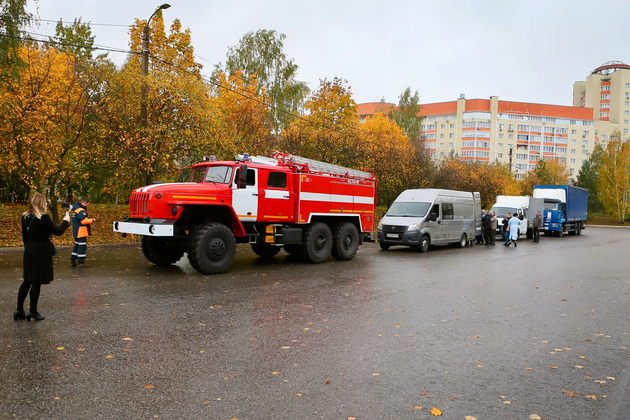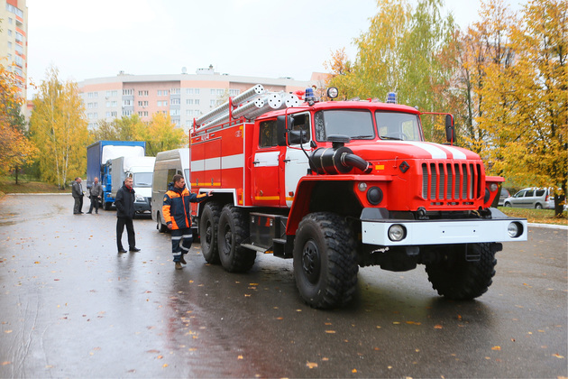 Во главе колонны – пожарная машина. Докучаевск, как и другие города ДНР страдает от обстрелов и, как следствие, пожаров. Поэтому противопожарной службе требуется поддержка и обновление материально-технической базы. Тем более что и инфраструктура служб МЧС там тоже разрушена. Сейчас команда владимирских строителей приступает к ремонту пожарной части Докучаевска. Подаренная регионом33 новая пожарная машина тоже скоро встанет на дежурство.