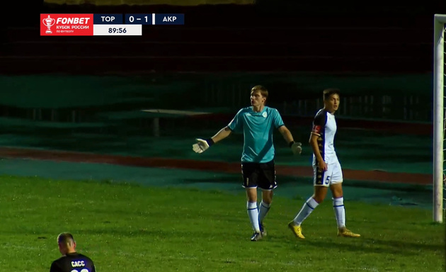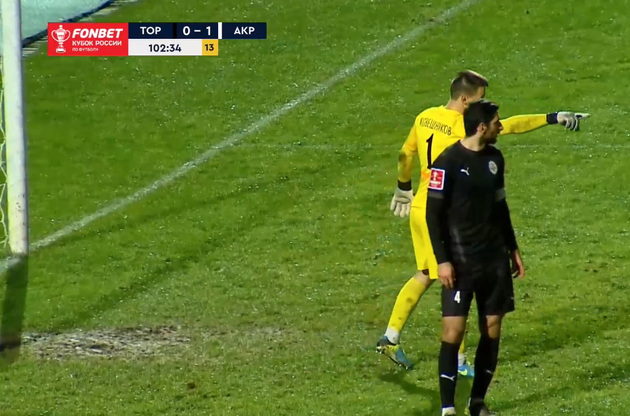 Константин Базелюк из «Акрона» реализовал пенальти, несмотря на то, что Артем Ковешников угадал направление удара, – 0:1.