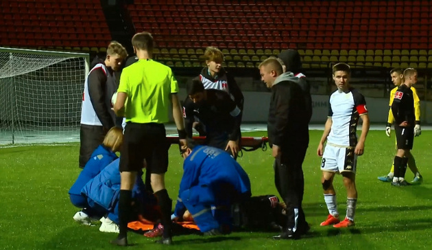 А потом матч был омрачен тяжелой травмой торпедовца Владислава Лабзина. В борьбе с соперником он получил сильное повреждение левой ноги. Пострадавшего долго готовили к тому, чтобы вынести на носилках и отправить в больницу на машине скорой помощи, которая подъехала к кромке поля.