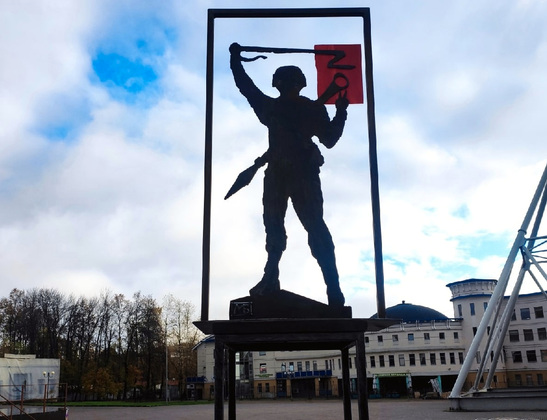 Работа выполнена из стали с использованием витражного стекла. Образ пришел внезапно, говорит автор, но нужно было придумать, как увязать современные символы патриотизма с георгиевской лентой и собственно фигурой солдата. Решение было найдено – и уже через два дня появилась фигура воина с георгиевской ленточкой в виде буквы Z, оружием в виде буквы О и пальцами рук в виде буквы V. Буквы складываются в слово ZOV, а сама скульптура по настрою чем-то перекликается со знаменитым волгоградским монументом «Родина-мать зовет!».