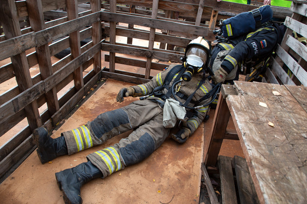 «Зачем под навалом-то? Как они его там нащупают?» - спрашиваем Евгения Горбунова. Он нам в ответ: «Должны найти. Это нормальная ситуация — искать в труднодоступных местах, дети часто под кровати забиваются при пожаре».