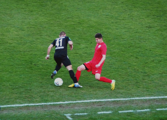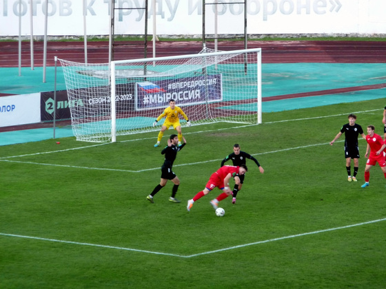 А вот «Знамя Труда» провело удачную контратаку, и с фланговой подачи низом Даниил Коноплев сделал счет окончательным – 1:1.