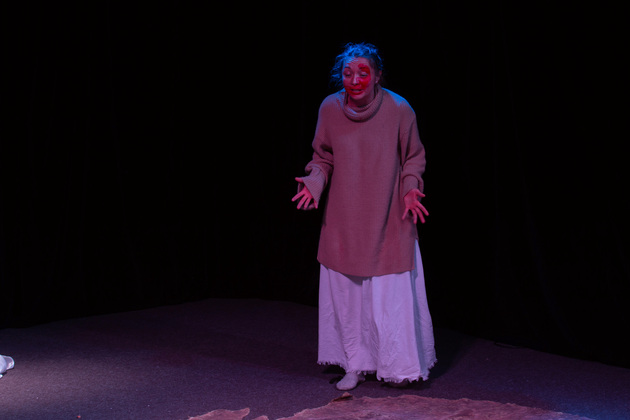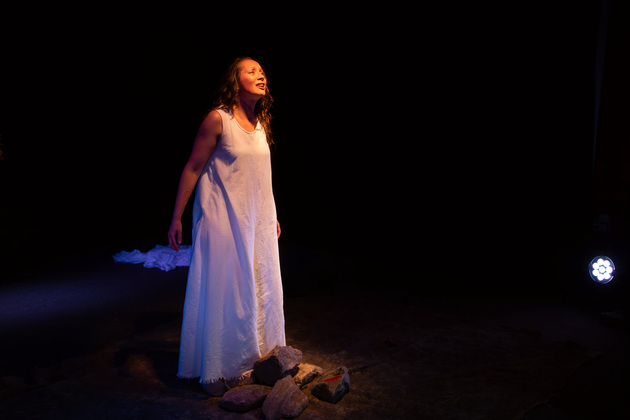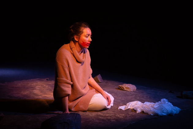 Тами хорошо за сорок, и она — среди камней, раскиданных по сцене будто грузы, которые надо поднимать и тянуть в гору, ведет разговор со своими самыми близкими мертвыми — мужем (с которым было, «как в склепе, - без любви, тихое совместное прозябание») и мамой (родившей ее, нежеланную, после «Освенцима» вопреки всему).