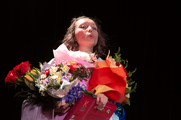 Премьеру показали в ОДРИ — спектакль предназначен для малой сцены, где все действие происходит буквально в нескольких метрах от зала. Тем сложнее была задача для единственной актрисы «Моей матери...» Анны Лузгиной — суметь не отпустить зрительское внимание все 75 минут своего монолога, наполненного драмой героини и, при этом, ее отчаянным желанием не сдаваться на милость рефлексии и вколачиваемых с детства внутренних демонов.