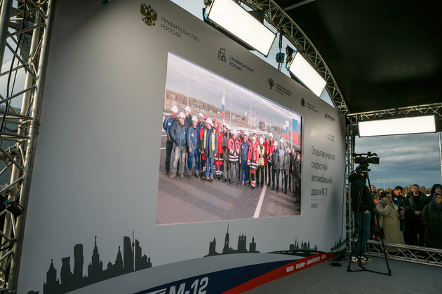 Марат Хуснуллин во время пуска нового участка М-12 находился на Международной специализированной выставке-форуме «Дорога2022» в Казани. Для проведения церемонии открытия дороги организовали телемост со столицей Татарстана.