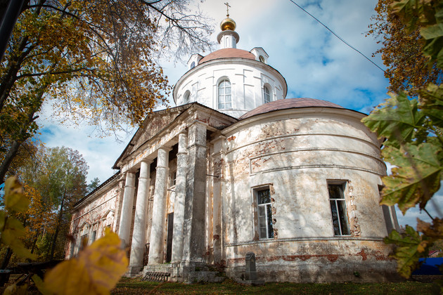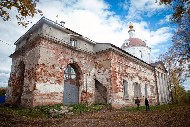 Как рассказала директор музея, церковь реставрируют с 2015 года. Внутрь попасть мы не смогли, но снаружи видны пластиковые окна. Значит – ремонтные работы действительно ведут. По информации автора книги «Из истории села Патакино: от усадьбы до санатория и больницы», первый молебен о восстановлении святыни отслужен 23 мая 2015 года, после чего началась реконструкция. Уже 27 июня приступили к ремонту кровли храма. Летом 2016 года, параллельно с восстановлением стен, начали роспись алтаря. В храме по итогу воздвигли Крест, перекрыли крышу трапезной части, установили двери и окна, оштукатурили зимний храм, отреставрировали верхнюю часть трапезного храма и колокольни, покрасили купол и световой барабан.