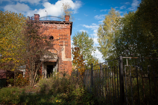 А в нескольких минутах езды на машине находится та самая туберкулезная больница. Нам дали возможность пройти на территорию учреждения и рассмотреть ближе флигель и водонапорную башню.