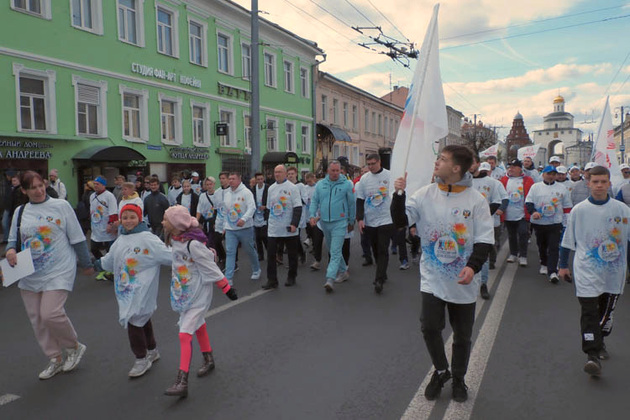 В этом году на праздник во Владимир приехали делегаты Всероссийского форума олимпийских советов из более, чем 70-ти регионов нашей страны, а также руководство Минспорта, олимпийские чемпионы, чемпионы мира, Европы и России. Участники акции прошли колонной от Золотых ворот до Соборной площади.