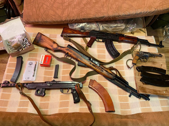 В результате оперативно-розыскных и следственных действий сотрудниками правоохранительных органов по месту жительства обвиняемого были обнаружены и изъяты с признаками «кустарной» модернизации самозарядный карабин Симонова калибра 7,62 мм, автомат АК калибра 7,62 мм, пистолет-пулемет Судаева калибра 7,62 мм, револьвер системы «Наган», граната РГД-5, более 300 патронов различного калибра, основные части огнестрельного оружия, а также оборудование для модернизации средств поражений.