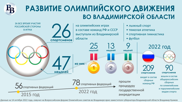– Было решено серьезно изменить нашу систему поддержки спорта, поскольку международных соревнований нет, но наши спортсмены продолжают выступать под нейтральным флагом и на Всероссийских олимпиадах. В 2022 году за результаты, показаные владимирскими спортсменами на чемпионатах России и Всероссийской спартакиаде по летним видам спорта, премии приравняли к размеру премии на Кубке Европы и мира соответственно, – резюмировал Куимов.