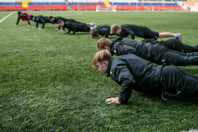 Видно, как с каждым этапом тренировки нарастает драйв, как игроки от 17-ти до 30-ти лет одинаково входят в раж.