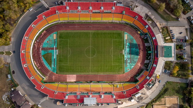 Основная часть игроков отправляется тренироваться на искусственное поле. А мы замечаем активность и на травяном натуральном поле в огромной чаше 20-тысячного стадиона «Торпедо». Хотя в этом году игр на настоящей траве во Владимире, возможно, уже не будет.