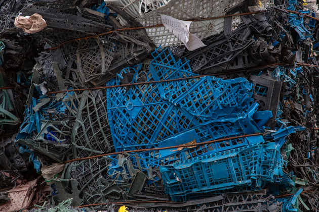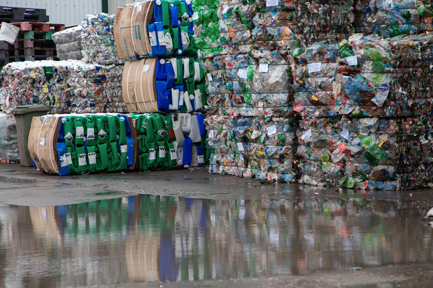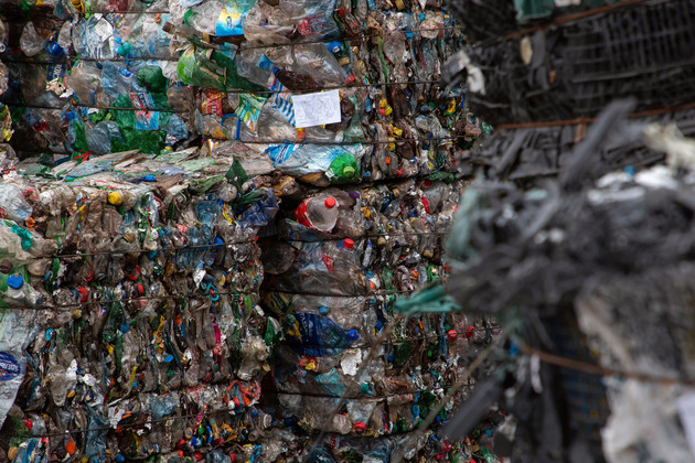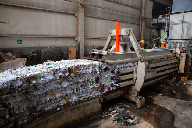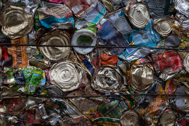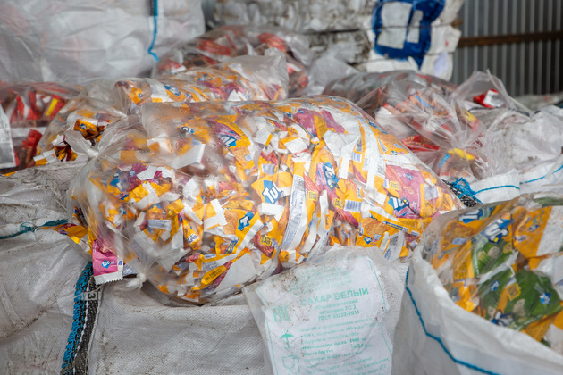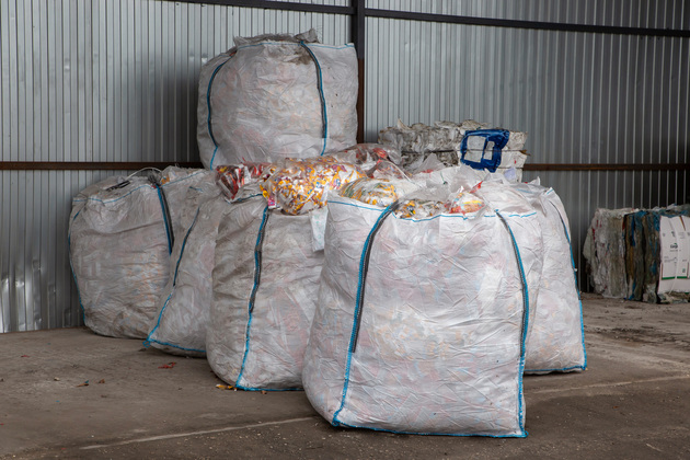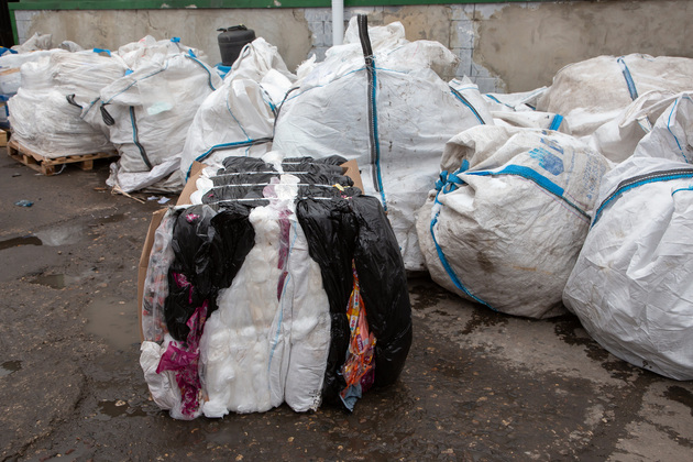 Журналистам показали зону площадки, куда свозят мусор из специальных сортировочных баков на улицах Владимира. В такие «сетки» можно выкидывать все утильные фракции. Баки могут быть наполнены до 90% вторичными материалами. На «МПС» пока обрабатывают порядка 50% из-за недостатка мест.