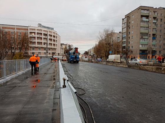 Алексей Говырин отметил, что строители уже уложили первый слой асфальта на половине путепровода, установлены ограждения, пешеходная часть покрыта изолирующим материалом. Скоро доделают подходы с двух сторон к самому мосту.