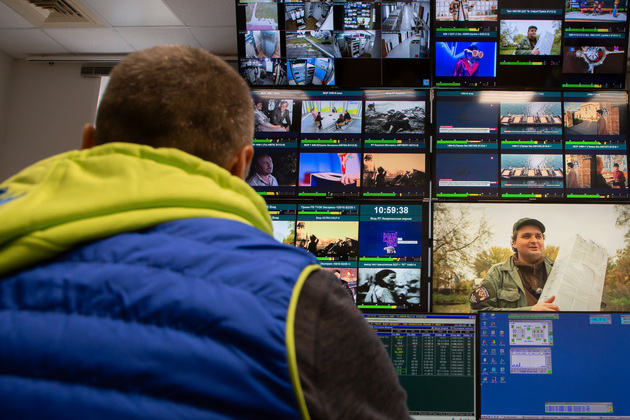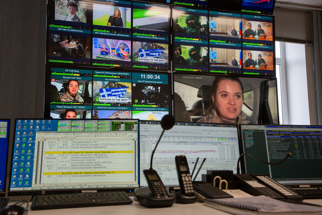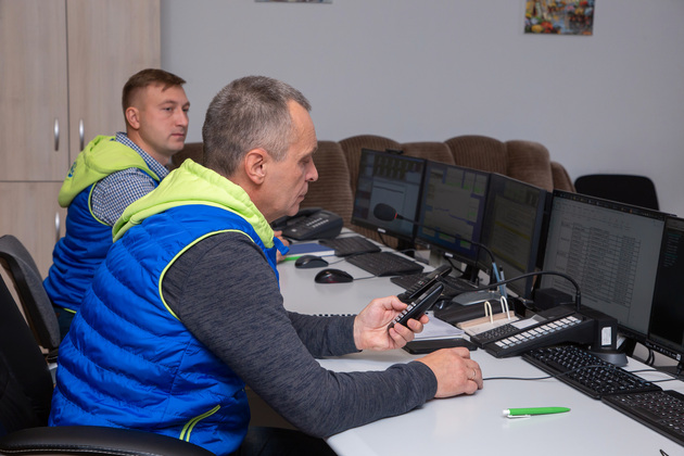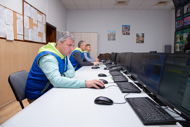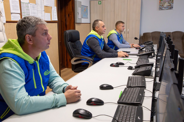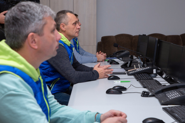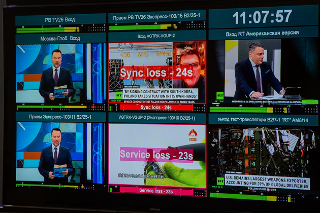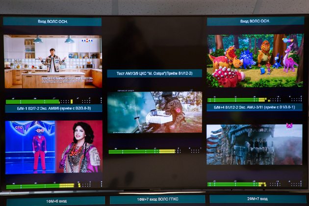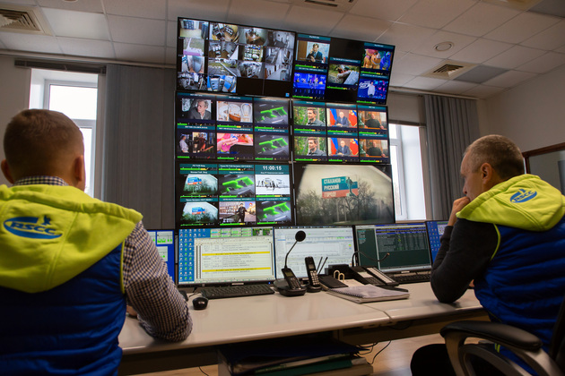 О том, как работает комплекс, журналистам рассказали начальник станции спутниковой связи «Владимир» Сергей Кондрашов и его заместитель по эксплуатации Иван Кужель. Удалось заглянуть в главную аппаратную, где очередная смена специалистов круглосуточно следит за качеством передачи трансляции телеканалов, в том числе 20-ти федеральных эфирных. Каждый из телеканалов передается на огромный дисплей в двойном изображении, показывая специалисту входящую со спутника «картинку» и исходящую. На случай сбоя или плановой профилактики оборудования подключается резервное оборудование.