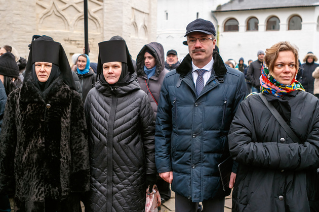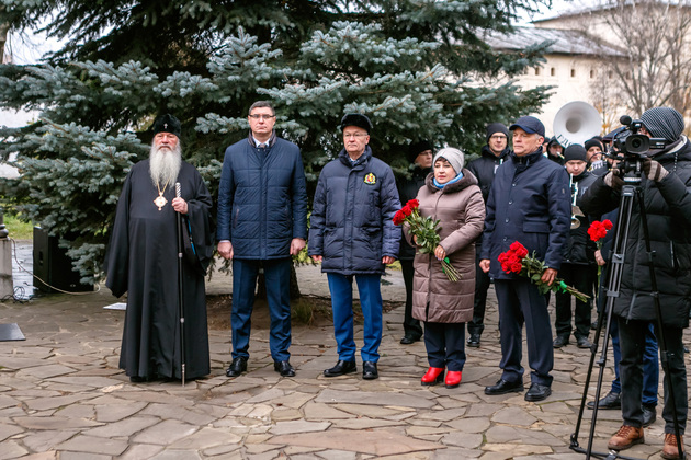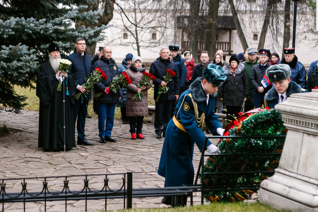 В завершение митинга в Спасо-Евфимиевом монастыре состоялось возложение цветов к могиле Пожарского в знак уважения к национальному герою России и всем соотечественникам, храбро защищавшим Отчизну от врага во все времена.