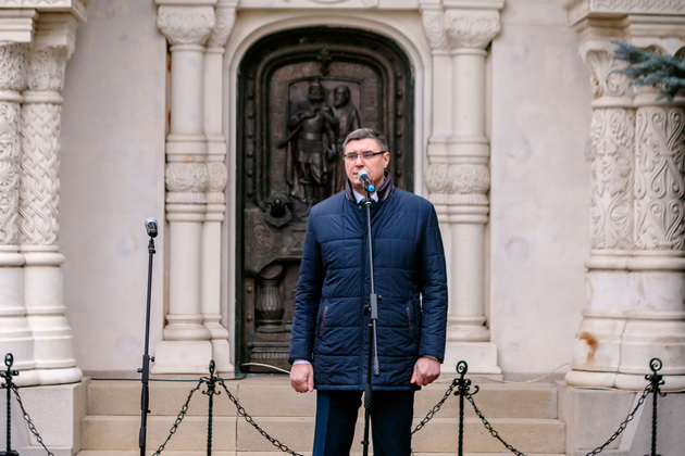«История всегда наказывает за плохо выученные уроки. Как только общество теряло единство, связь с церковью и государством – этим тут же пользовались враги. Это не раз повторялось. Наше единство – главное оружие, способное противостоять любому злу. И сегодня наши ребята ведут сложные бои, чтобы над нами было мирное небо. Чтобы пережить страшное время необходимо единство. Мы это точно знаем. И справедливость восторжествует!» – выступил Александр Авдеев.