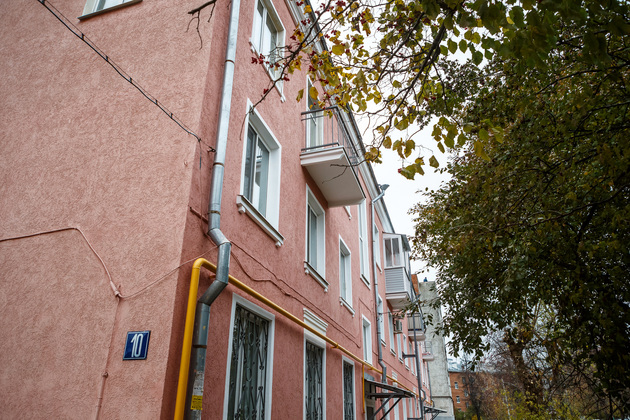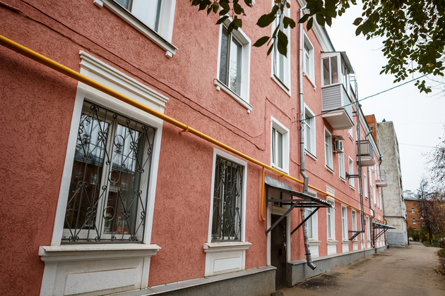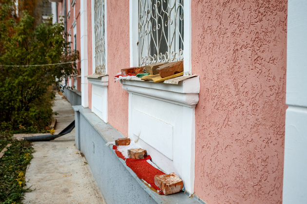 «Местами пришлось даже перекладку делать, там, где кирпичи из стены уже вываливались, — рассказывает подрядчик Николай Платонов. — Трещины заделали. Если на штукатурке трещина небольшая, то на кладке она больше. Расшили, зачеканили, поставили скобы, закрепили. Заменили балконы, окна в подъездах, отливы, пожарные лестницы. Установили новые козырьки над подъездными дверями, а сами двери утеплили. Цоколь полностью перештукатурили».